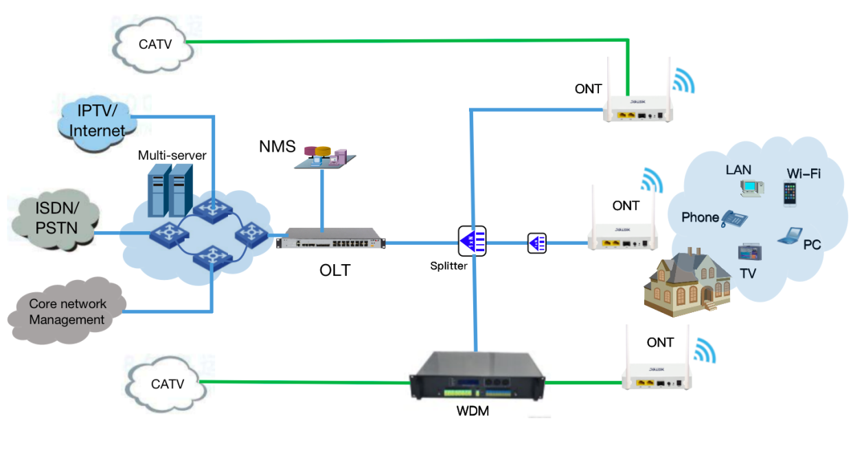 System Capacity: 1:128 split ratio, full configuration supports up to 2048 GPON terminals.